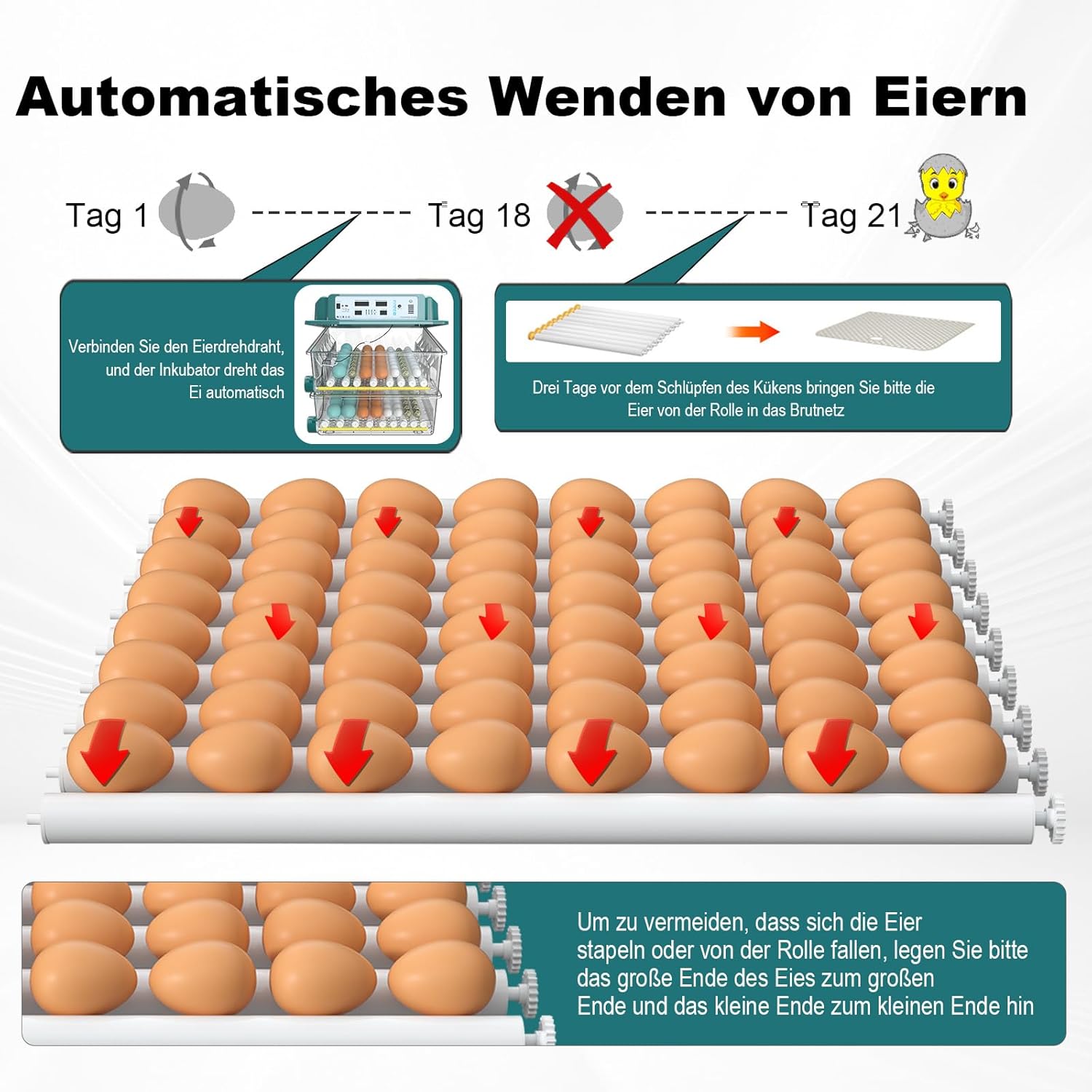 Automatic Egg Turning: Once the two layers of the egg spiral lines are connected, the incubator automatically turns the eggs every 90 minutes, ensuring even heat distribution for optimal hatching.